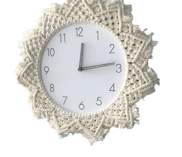 Bohotimes håndlagde makramé-veggklokke er en unik blanding av funksjonalitet og kunstnerisk utførelse. Laget med intrikate makramé-teknikker, fungerer denne klokken både som et ur og et blikkfang, og gir en varm, boho-chic stemning til ethvert rom. De naturlige tonene og det teksturerte designet gjør den til et perfekt tillegg til stuer, soverom eller koselige hjørner.