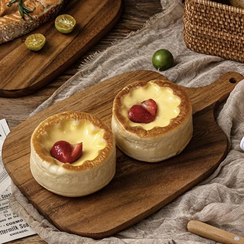 Denne skjærebordet er laget av høykvalitets treverk og er konstruert for å tåle daglig bruk. Den robuste konstruksjonen sikrer at det kan brukes til mange forskjellige kjøkkenoppgaver, fra hakking til servering, i mange år fremover.