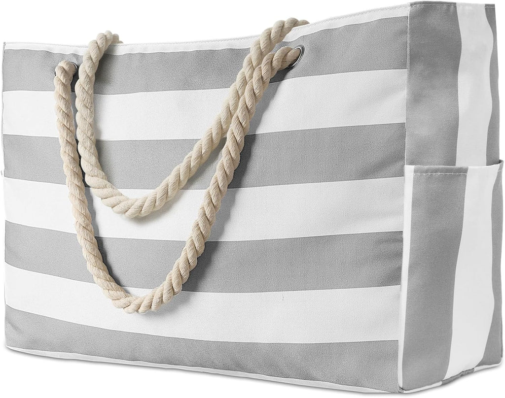 Denne vesken er designet med funksjonalitet i tankene, og har et mykt polyesterfôr, en innvendig våtlomme for fuktige gjenstander og to sidelommer for flasker. De solide tauhåndtakene hviler komfortabelt på skulderen – selv når vesken er full. Den tørker raskt, motstår krøller og er enkel å rengjøre med en fuktig klut eller i en skånsom maskinvask etter en lang dag i solen.