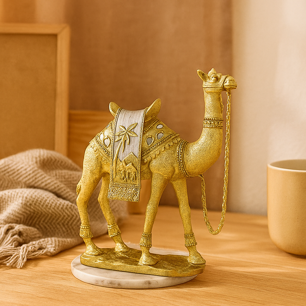 Kamelfiguren DesertMajesty er omhyggelig laget og viser frem detaljert håndverk som gjenspeiler den varige skjønnheten til ørkenens dyreliv. Dens elegante holdning og sofistikerte ornamenter gjør den til et allsidig tillegg til forskjellige interiørstiler, fra bohemsk til klassisk.