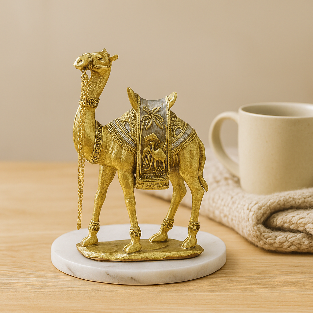 Kamelfiguren DesertMajesty fanger sjarmen til ørkenlandskap og de rike tradisjonene innen kunst fra Midtøsten. Med sin fint utformede sal og raffinerte finish blir dette dekorative møbelet et fengslende blikkfang i ethvert rom, og blander kulturell sjarm og sofistikert design.