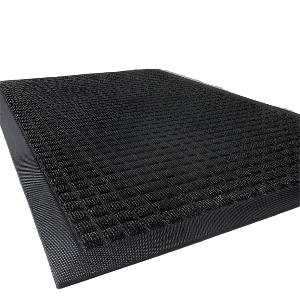 Denne dørmatten er bygget for å tåle alle værforhold og har en strukturert overflate som forbedrer dens evne til å fange opp skitt og vann. Den sklisikre baksiden sørger for at den holder seg sikkert på plass og forhindrer at den sklir. Hold hjemmet ditt rent og stilig med denne praktiske og funksjonelle dørmatten.