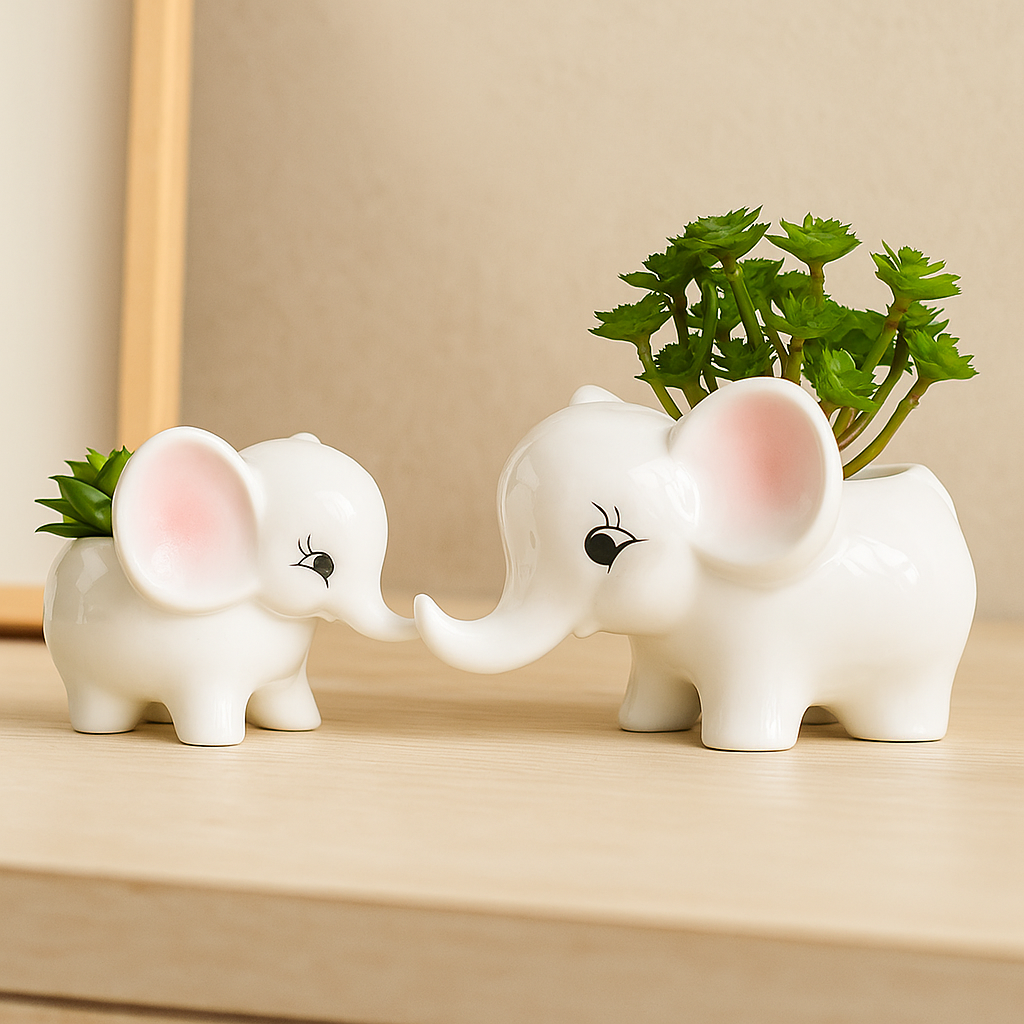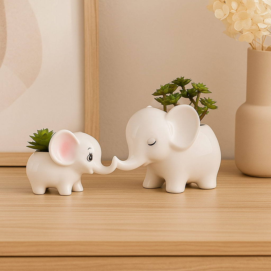 Vi introduserer den skulpturelle blomsterkassen ElephantElegance, en herlig blanding av kunstnerisk design og praktisk bruk. Denne blomsterkassen skiller seg ut med sin moderne, elefantinspirerte form, og bringer sjarm, originalitet og raffinement til ethvert rom. Enten den plasseres på en hylle, et skrivebord eller en vinduskarm, fungerer den som både en dekorativ og funksjonell blomsterkasse, og forbedrer hjemmet ditt med sin unike karakter.