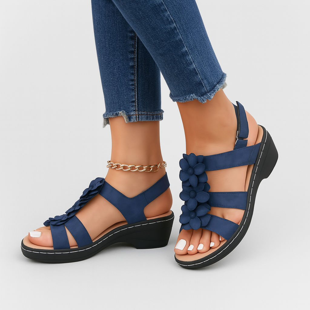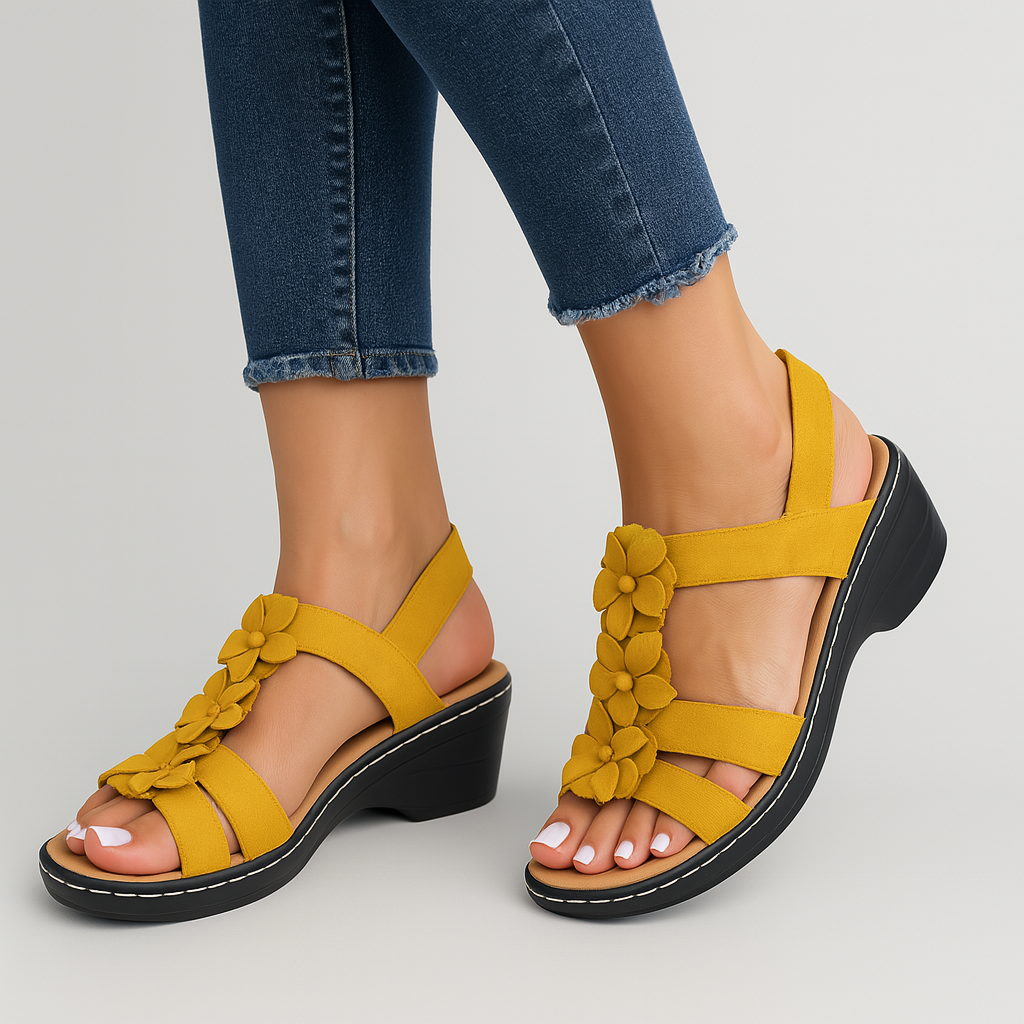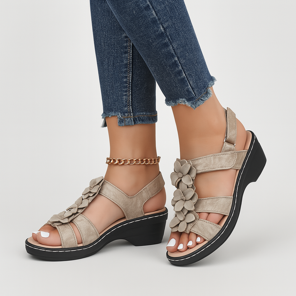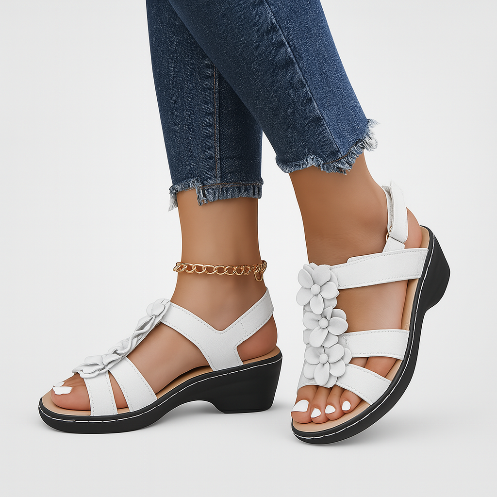 Den støttende, kileformede sålen fremmer bedre holdning og absorberer støt, noe som reduserer belastningen på leddene under daglige bevegelser. En justerbar stropp sikrer en sikker passform, mens det pustende designet holder føttene kjølige og tørre hele dagen.