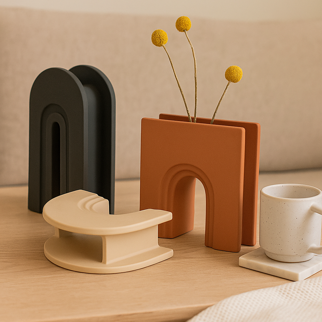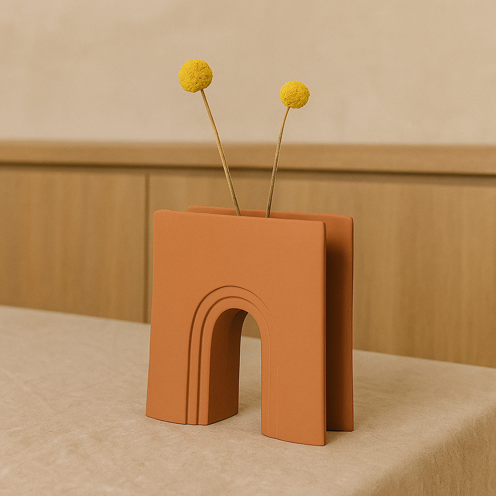 Vi introduserer GeoSculpt håndlagde keramiske vase, et slående møbel som sømløst blander moderne design og fint håndverk. Den strukturerte silhuetten og de minimalistiske linjene gjør den til et ideelt supplement til moderne interiør, og gir visuell interesse uten å overvelde rommet.