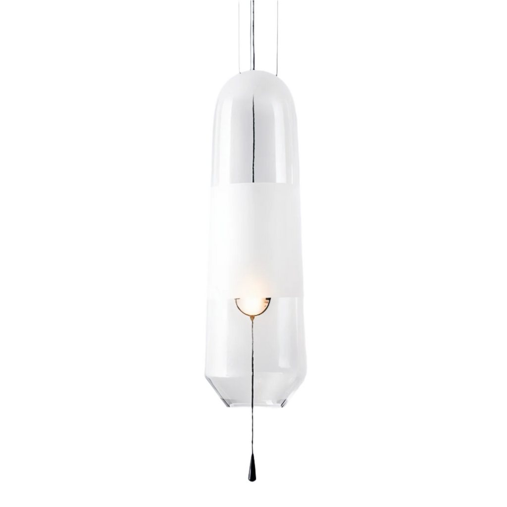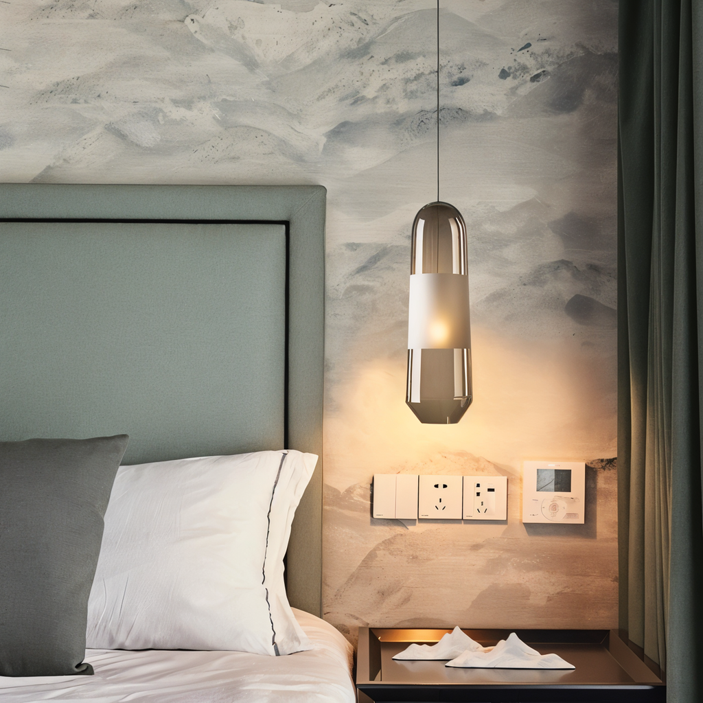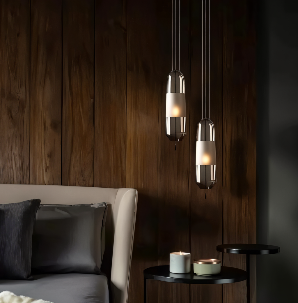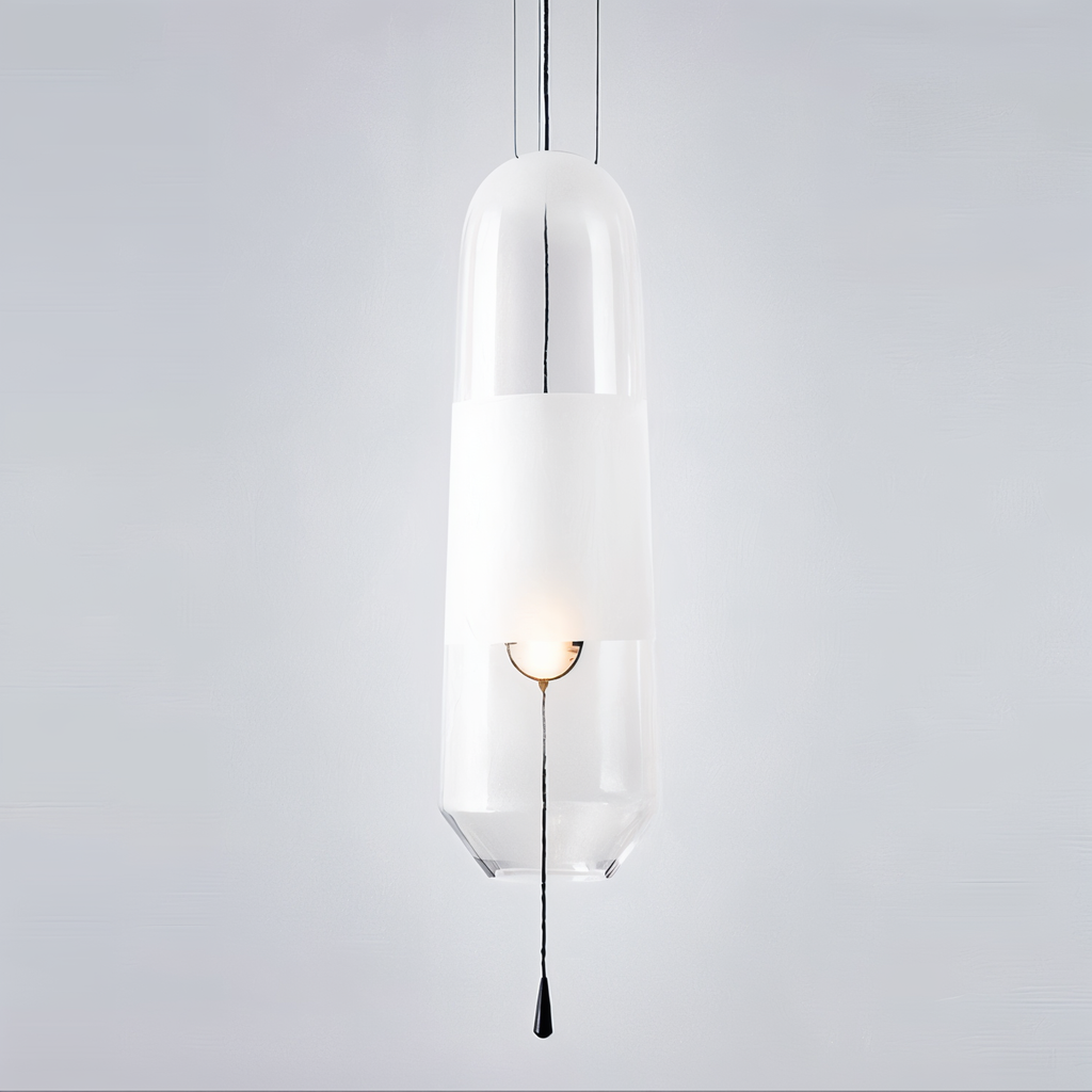 GlowCurve-pendellampen i glass kombinerer vintage-eleganse med moderne enkelhet, noe som gjør den til et perfekt belysningsvalg for kjøkken, spisestuer og stuer. Med sin avlange klare glassskjerm og minimalistiske silhuett skaper denne pendellampen en myk, stemningsfull glød som forsterker atmosfæren i ethvert rom.