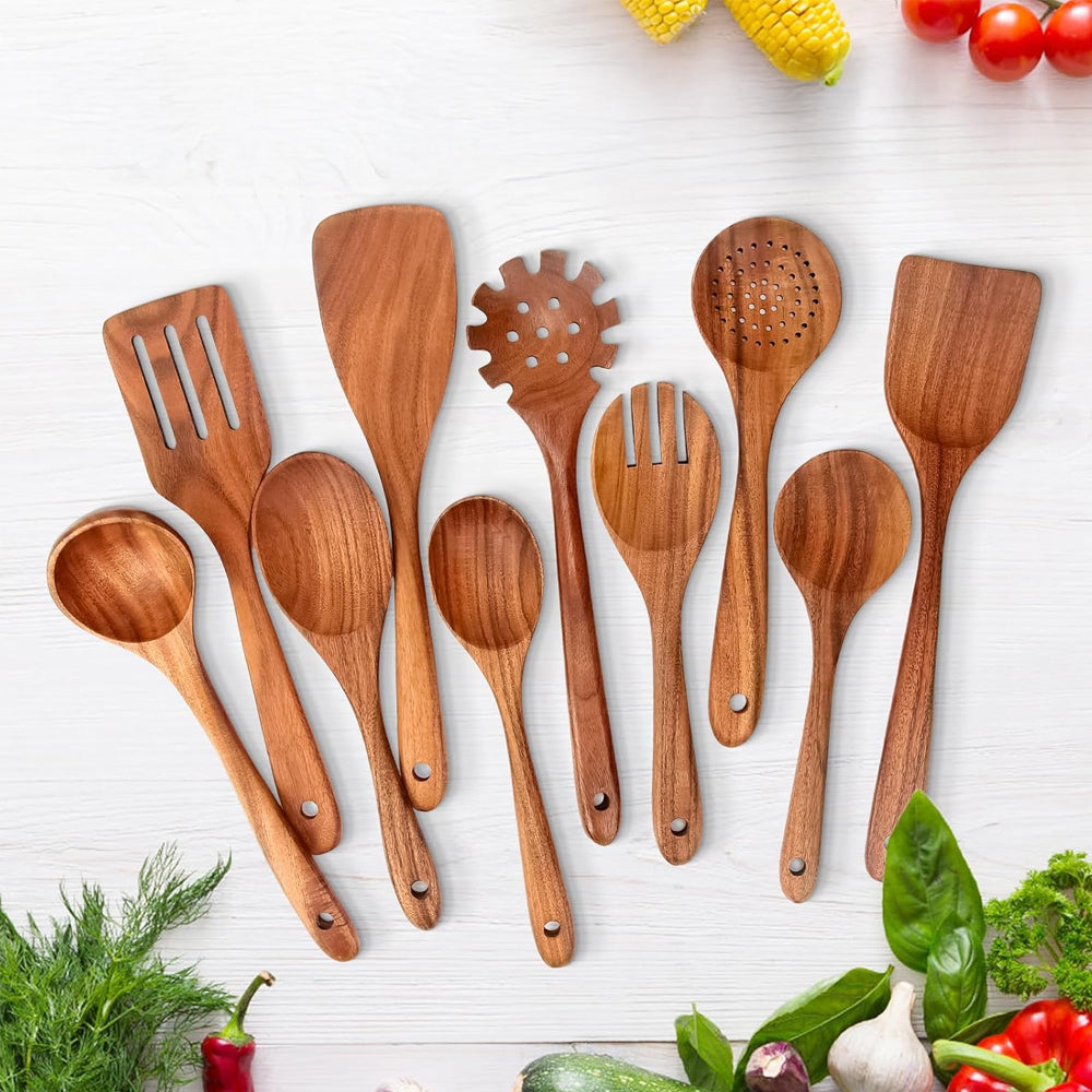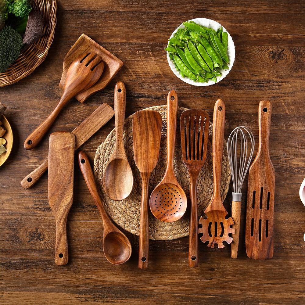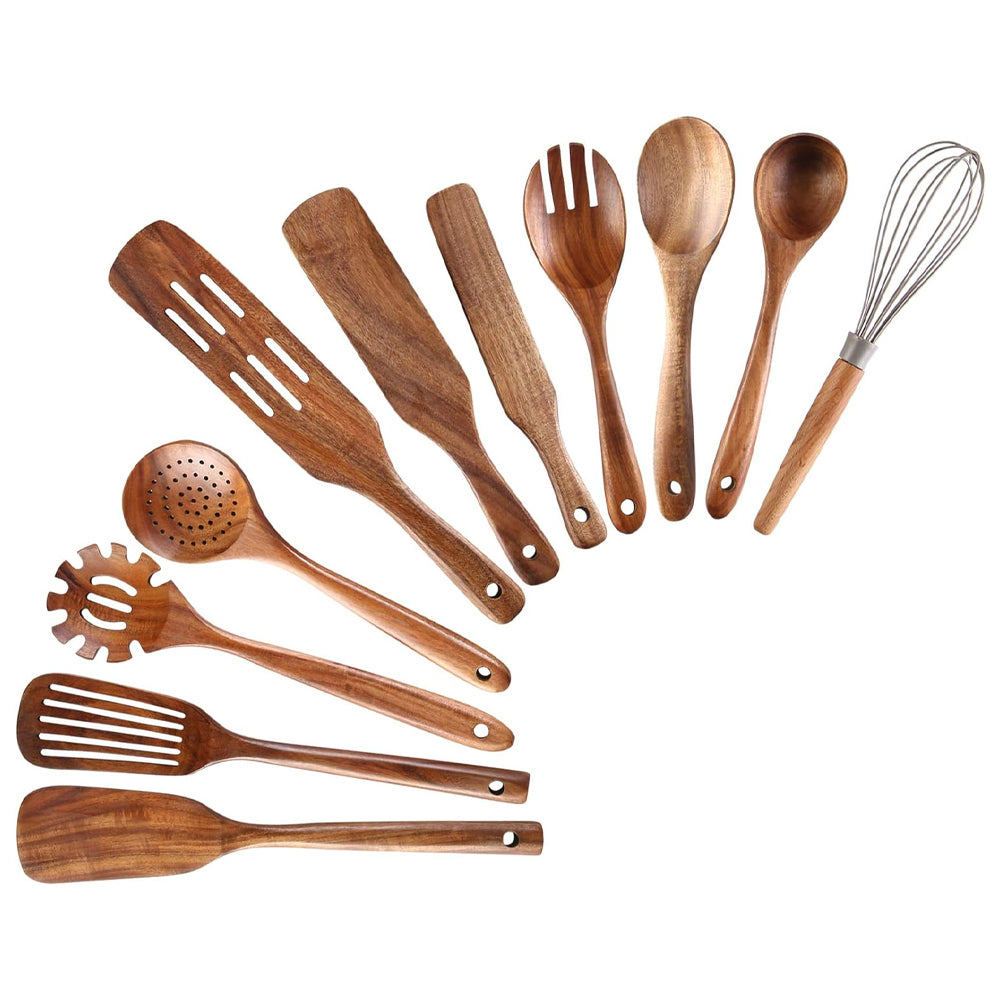 Dette settet gir deg alt du trenger for å lage mat på en enkel og effektiv måte, fra skjeer til spatler og pensler. De ergonomiske trehåndtakene gir et godt grep, og det tidløse designet passer perfekt inn i ethvert kjøkken.
