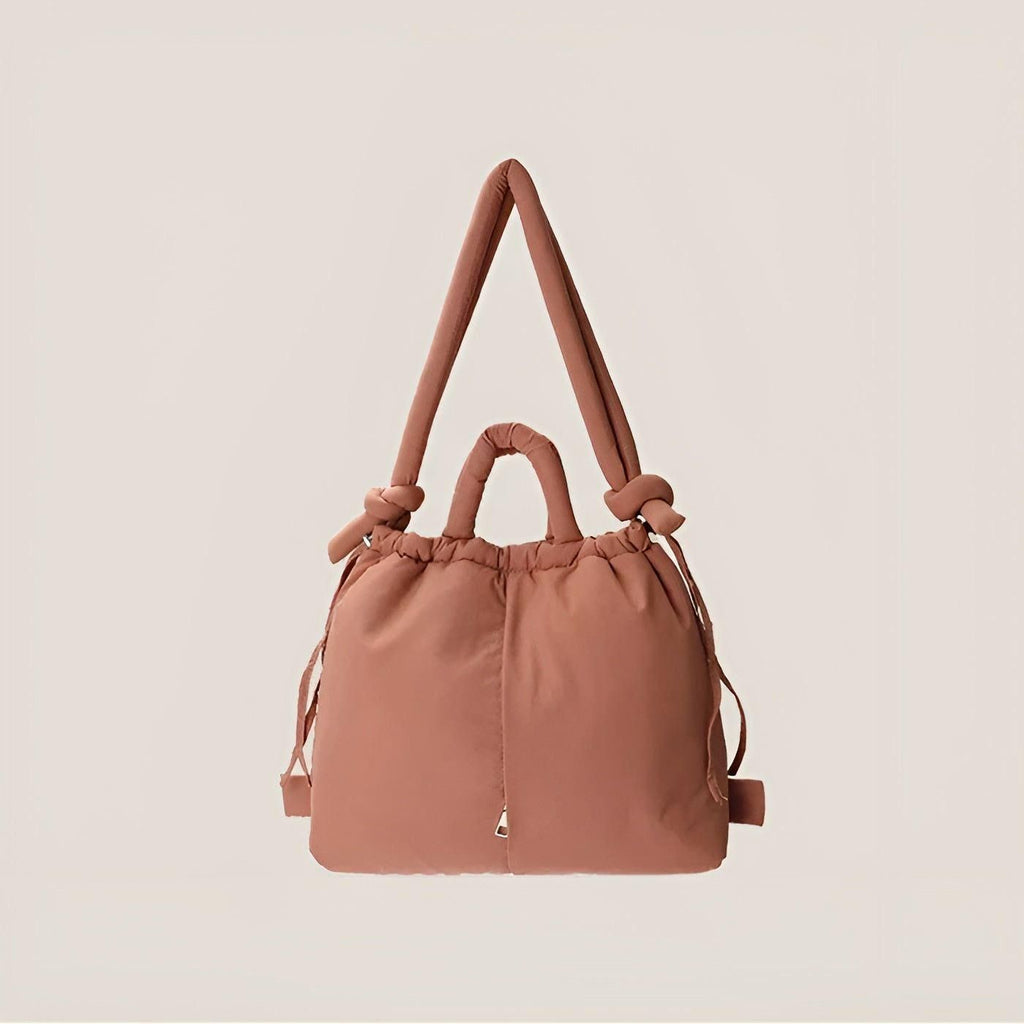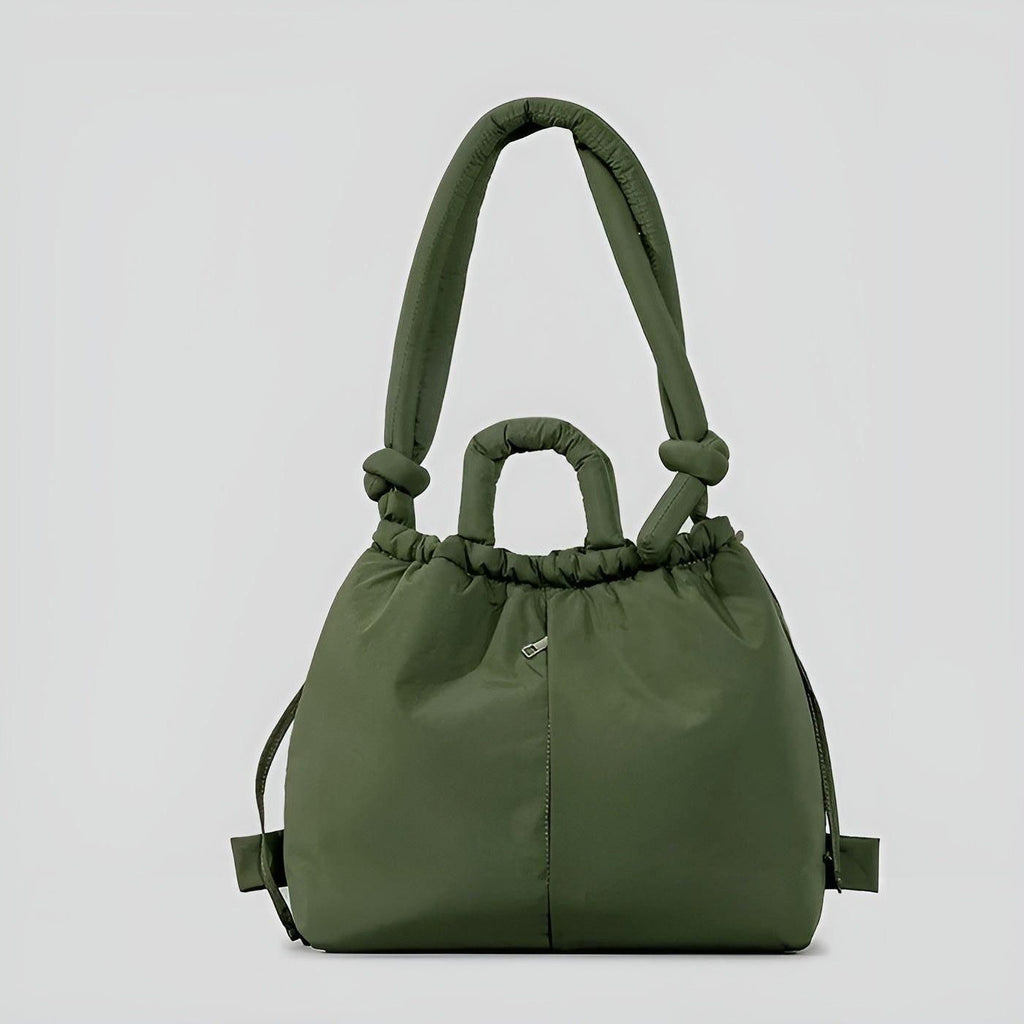 Hold deg stilig og organisert med Hera – Stilig bøtteveske med snøring for hverdags eleganse - en perfekt blanding av mote og funksjon. Designet for den moderne kvinnen, tilbyr den et romslig interiør samtidig som den opprettholder et slankt og sofistikert utseende.