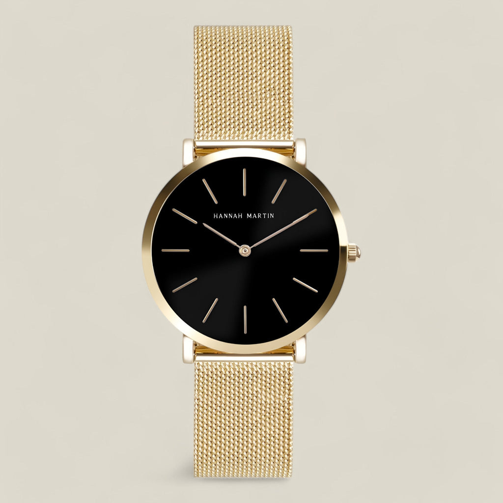 Ivy - Rund klokke med tidløs eleganse er laget av materialer av høy kvalitet og er både slitesterk og komfortabel. Den lette, svarte nettingreimen sitter komfortabelt på håndleddet, mens den presise tidtakingen sørger for at du alltid er i rute.