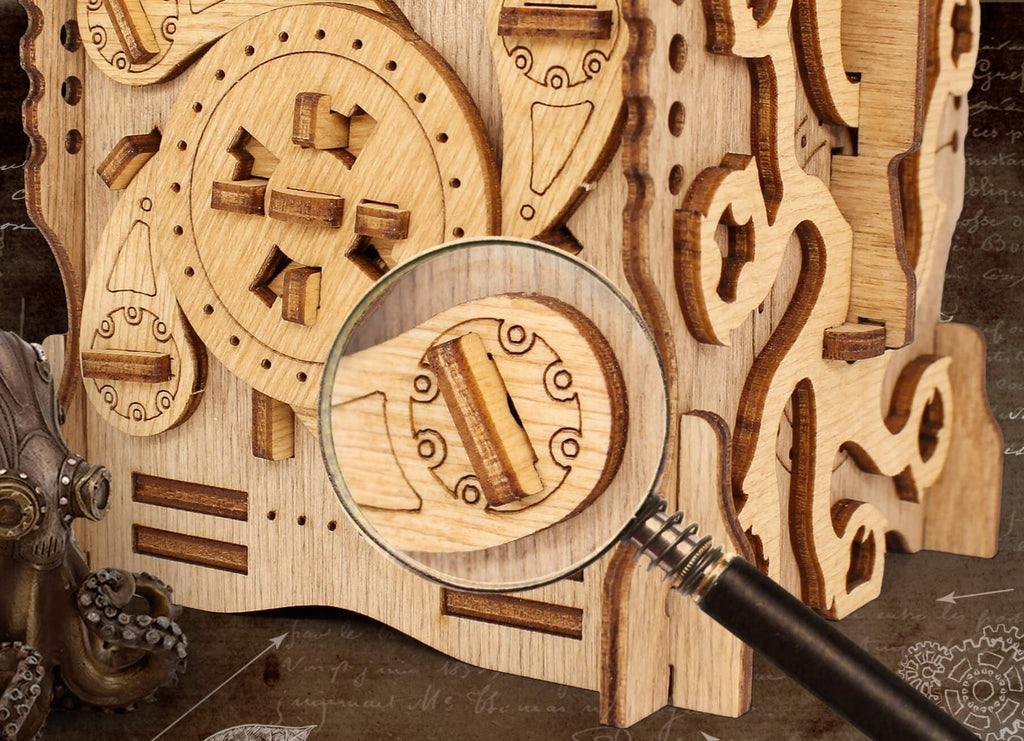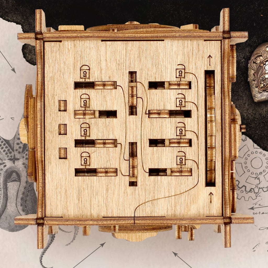 Denne vakkert designede esken byr på en spennende utfordring for entusiaster. Løs hemmelighetene ved å løse kløktige gåter og oppdage skjulte rom, noe som gjør den til den perfekte gaven for puslespillelskere.