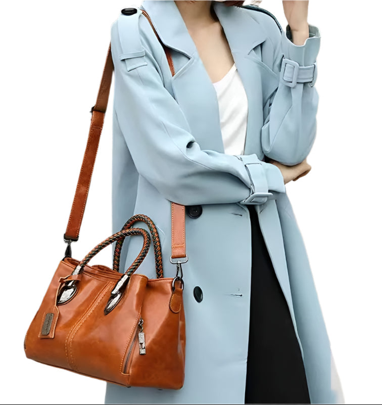 Leticia-vesken kombinerer raffinert stil med praktisk allsidighet. Med vakkert flettede håndtak på toppen, gir denne vesken et snev av raffinement til hverdagslooken din, samtidig som den opprettholder en klassisk silhuett som passer for enhver anledning.