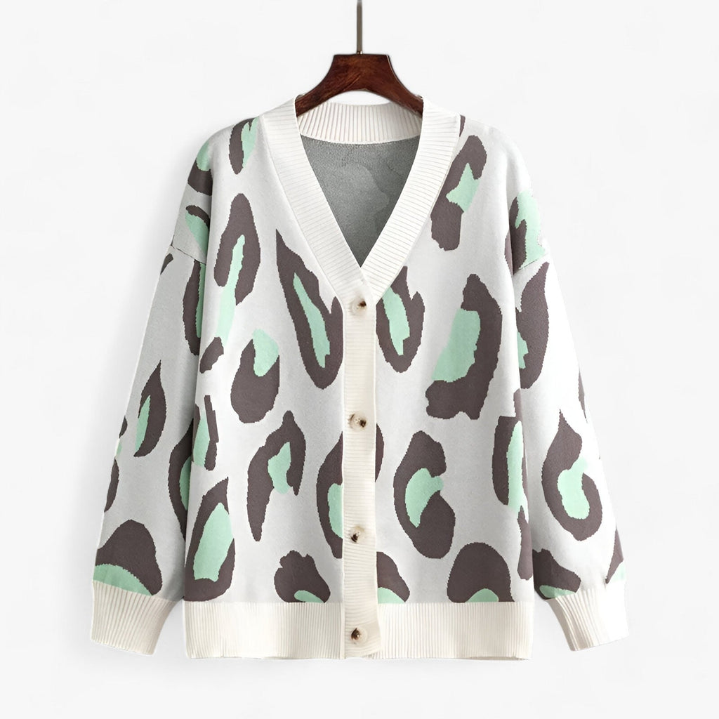 Denne cardiganjakken er laget av mykt, pustende stoff og er perfekt for bruk året rundt. Det kunstneriske trykket gir den klassiske strukturen en moderne vri, noe som gjør den til et blikkfang i garderoben din.