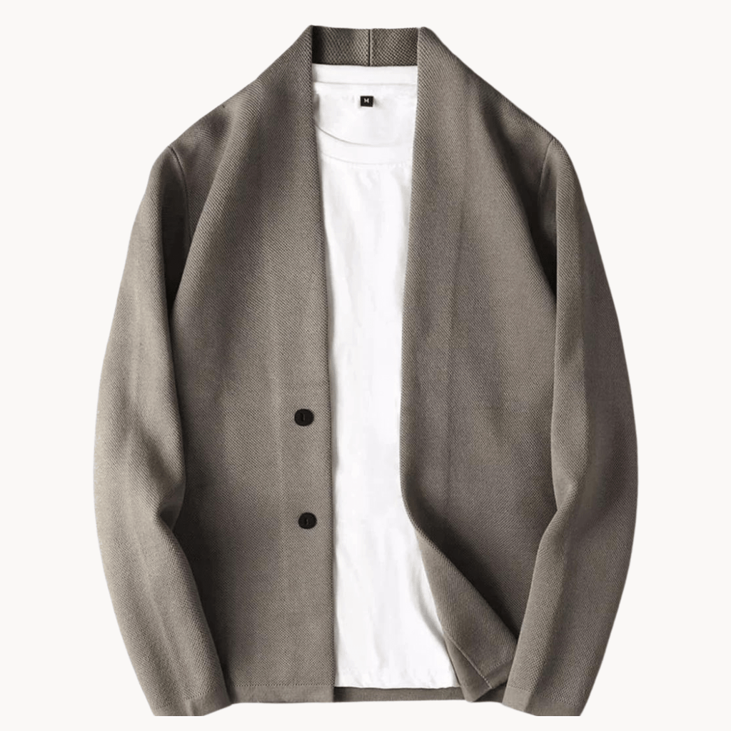 Nathan Casual cardiganjakke gir stilen din et snev av eleganse, og kombinerer den koselige følelsen av en cardigan med strukturen til en jakke. Denne jakken er perfekt for avslappede utflukter eller helgens ærend, og er laget for deg som ønsker å holde deg komfortabel uten å gå på kompromiss med stilen. Ta på deg et allsidig lag som er klart for enhver anledning.