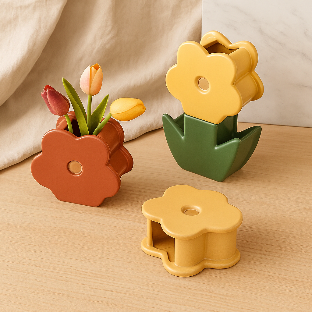 Nordic Bloom-vasen er laget av lette materialer og er enkel å flytte og omorganisere, slik at du enkelt kan friske opp innredningen din. Den moderne designen passer sømløst inn i en rekke interiørstiler, fra minimalistisk til eklektisk, og gir visuell interesse og distinkt sjarm uansett hvor den plasseres.