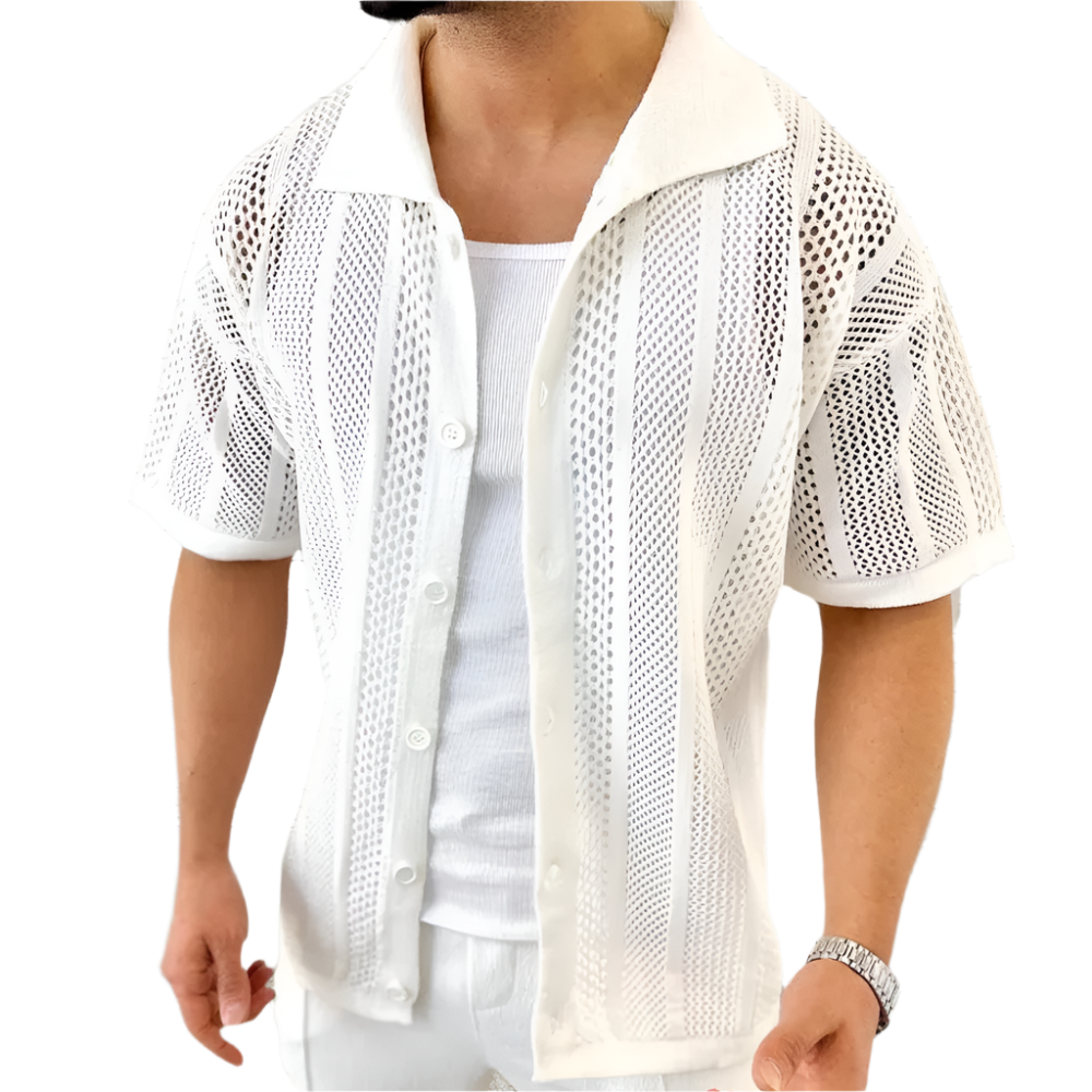 Oppdater garderoben din med Oliver - kortermet cardigan med knapp for menn, designet for menn som setter pris på både stil og komfort. Den klassiske kragen kombinert med knappelukking foran gir et polert utseende, mens de korte ermene gjør den ideell for varmere dager.