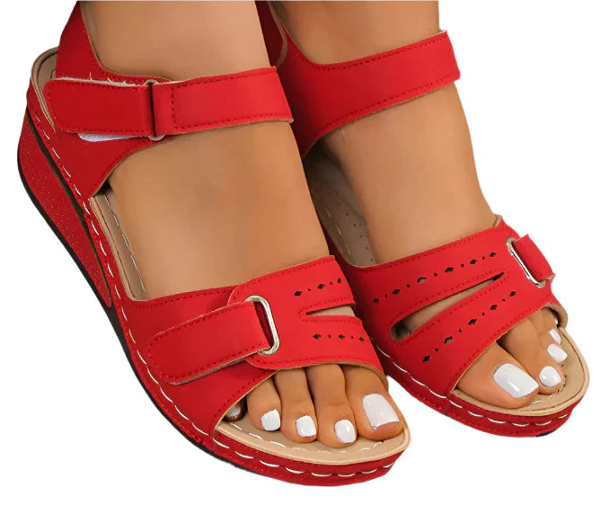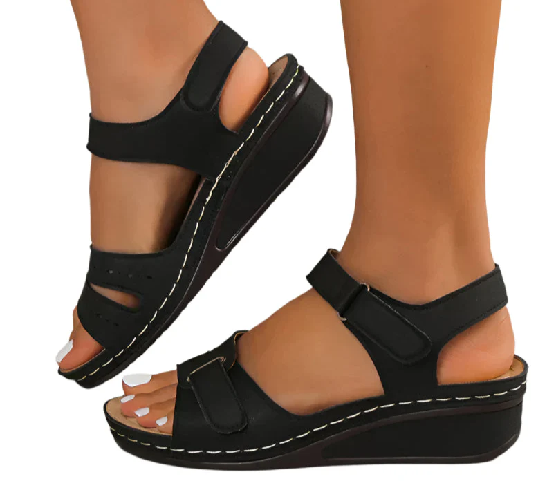 Sarah-sandaler er din daglige følgesvenn for uanstrengt komfort og stil. Med en elegant såle med høy kile og to justerbare stropper, gir de en sikker passform og en lett følelse. Perfekt for uformelle dager, turer i solen eller helgeturer.