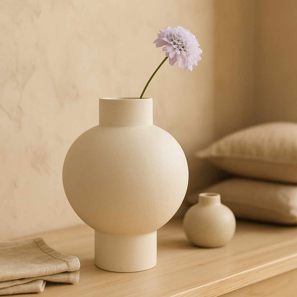Serenity Curve-vasen er laget med nøye oppmerksomhet på detaljer, og passer perfekt inn i moderne rom takket være sine rene linjer og raffinerte finish. Den nøytrale fargepaletten garanterer harmonisk integrering i ulike dekorasjonsstiler, fra skandinavisk til moderne minimalisme.