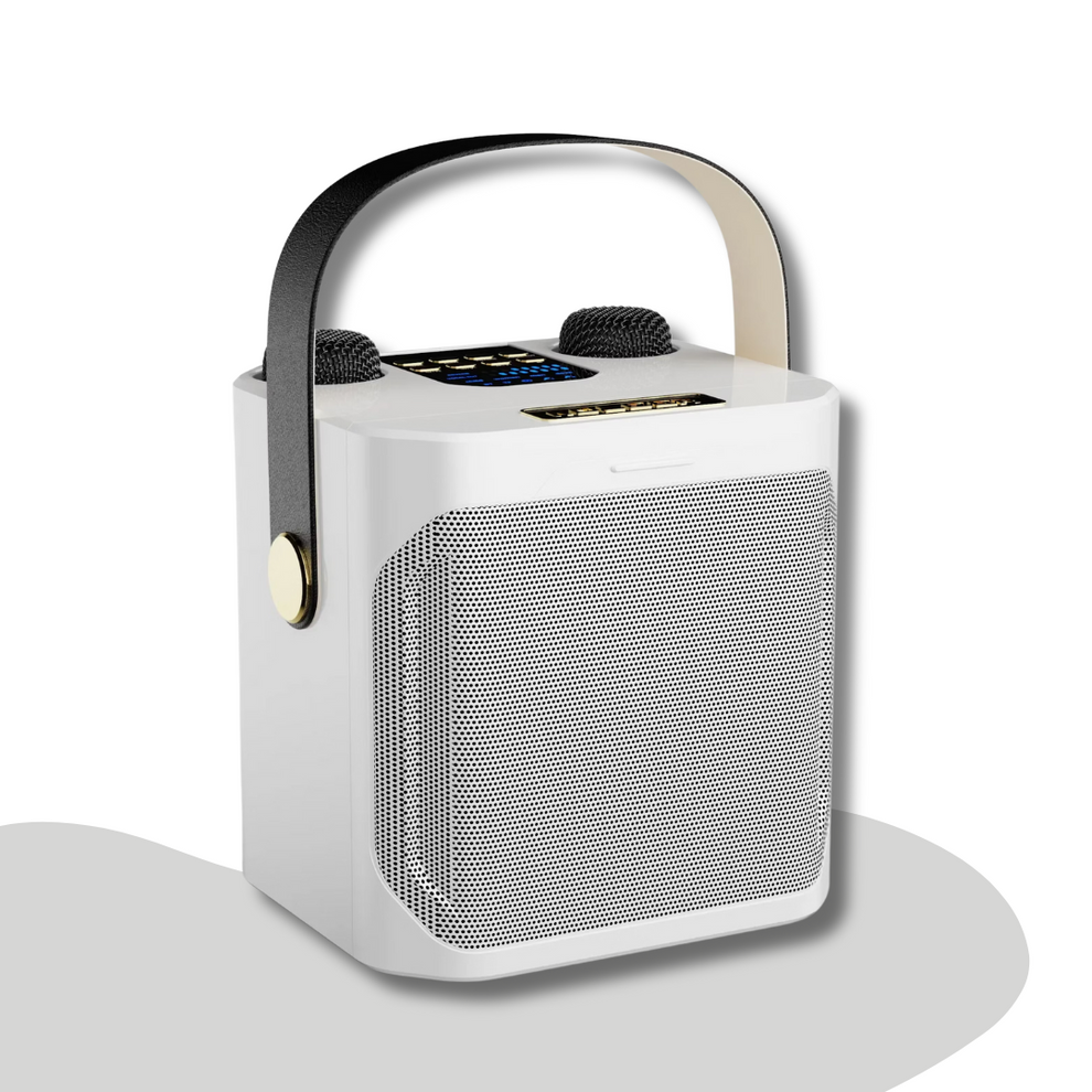 Gjør et hvilket som helst sted til en fest med den bærbare SingGo Karaoke-maskinen! Dette kompakte, batteridrevne høyttalersystemet er designet for spontane jamsessioner, familiesammenkomster eller morsomme kvelder med venner. Med innebygde doble mikrofoner og en telefonholder er det din personlige konsert uansett hvor du går.