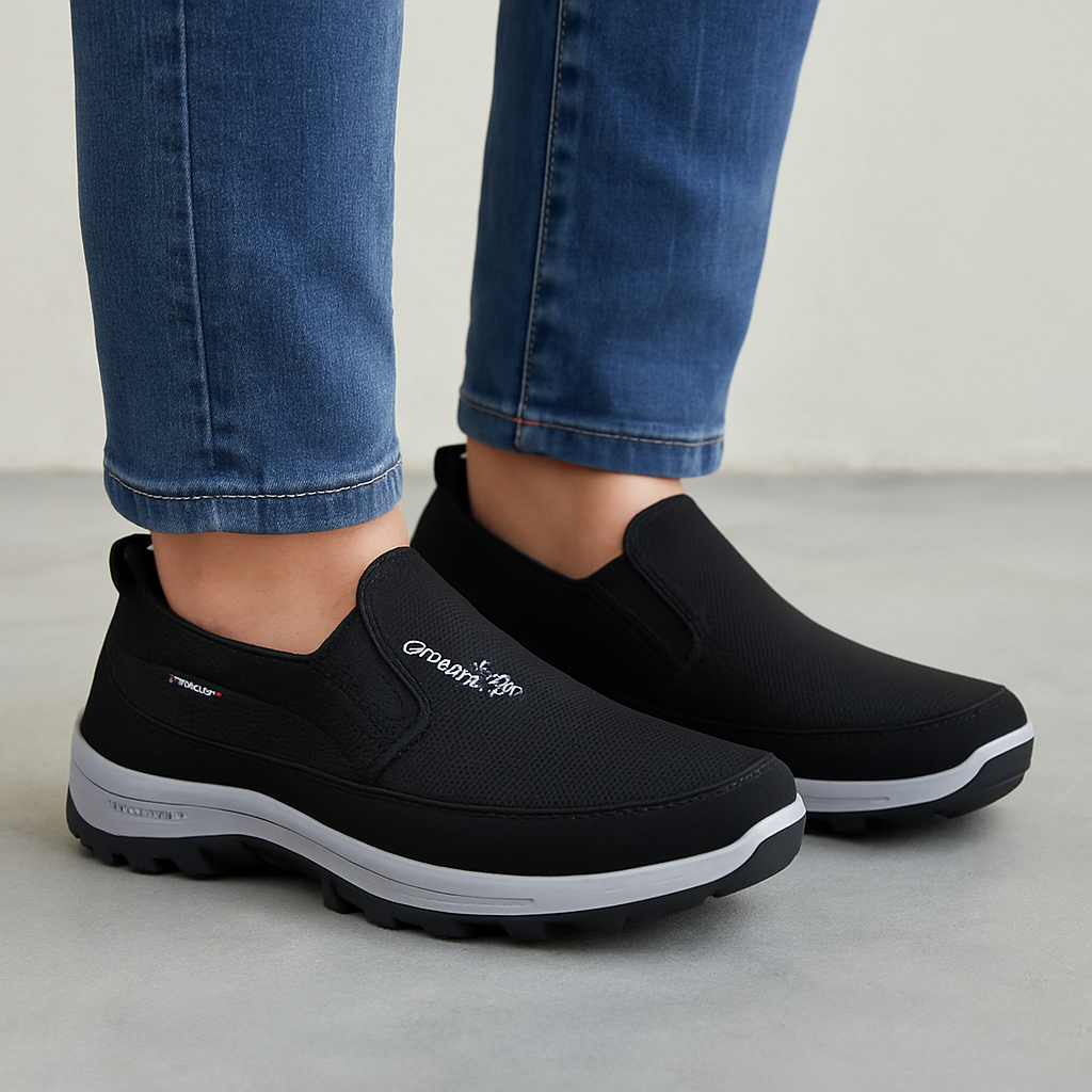 Oppdag den perfekte blandingen av praktisk bruk og komfort med Soren slip-on-sko for menn – uanstrengt komfort og stil Disse slip-on-skoene er designet for den moderne mannen, med et håndfritt design som lar deg enkelt ta dem av og på uten å bøye deg ned. De polstrede innleggssålene gir eksepsjonell demping, noe som gjør dem ideelle for lange dager på føttene.