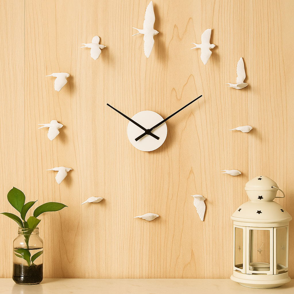 Den kunstneriske veggklokken SkyFlight forvandler ethvert rom med sin elegante design og grasiøse svelgesilhuett. Denne minimalistiske klokken kombinerer kunstnerisk uttrykk med praktisk funksjon, noe som gjør den til det perfekte valget for å forbedre moderne eller skandinavisk-inspirerte interiører. Det subtile, men iøynefallende mønsteret symboliserer frihet og bevegelse, og skaper en beroligende atmosfære.