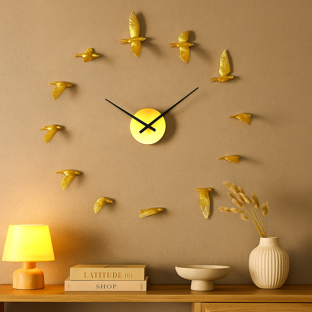 SkyFlight-klokken er laget av materialer av høy kvalitet og utstyrt med en stillegående kvartsmekanisme som sikrer nøyaktig tidtaking uten forstyrrende støy. Denne klokken er enkel å installere og vedlikeholde, og passer naturlig inn i stuer, soverom eller kontorer, og forbedrer interiøret ditt med uanstrengt sjarm.