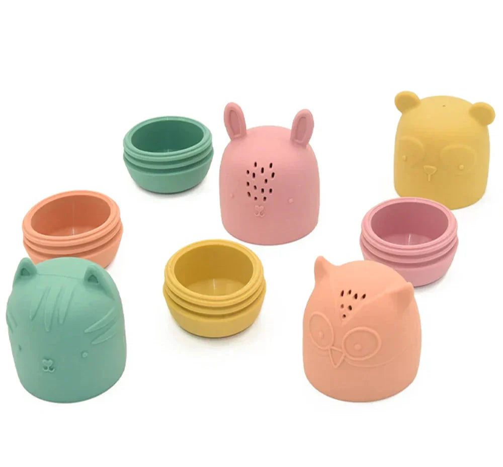 Disse lekene er laget av myk, BPA-fri silikon, og er skånsomme mot små hender og perfekte for utforskning under badetid. Den stabelbare designen støtter tidlige motoriske ferdigheter, mens de søte pastellfargene og dyreformene holder smårollingene engasjerte og underholdt.