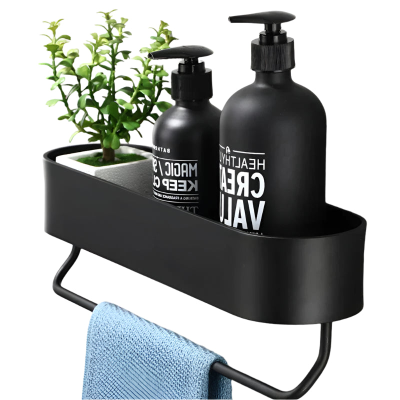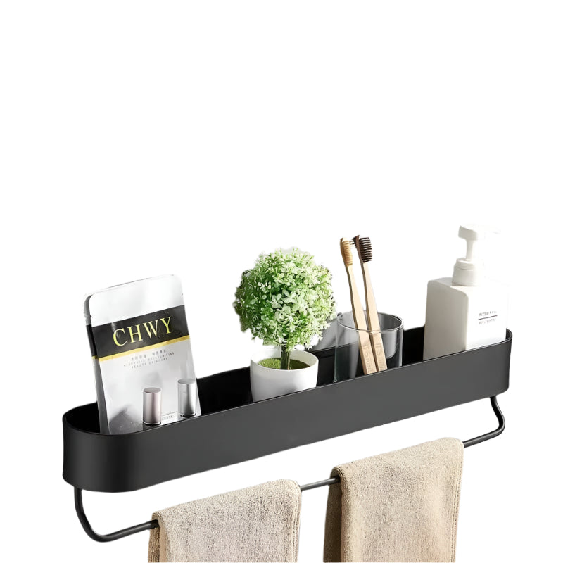 Den stilige baderomshyllen med håndklestativ er den perfekte blandingen av stil og funksjonalitet for kompakte bad. Denne vegghyllen har et moderne og rent utseende, og hjelper deg med å holde hverdagens nødvendige ting organisert samtidig som den sparer verdifull gulvplass. Den integrerte håndklestangen gir praktisk bekvemmelighet, noe som gjør den ideell for å holde håndklær tørre og innen rekkevidde.
