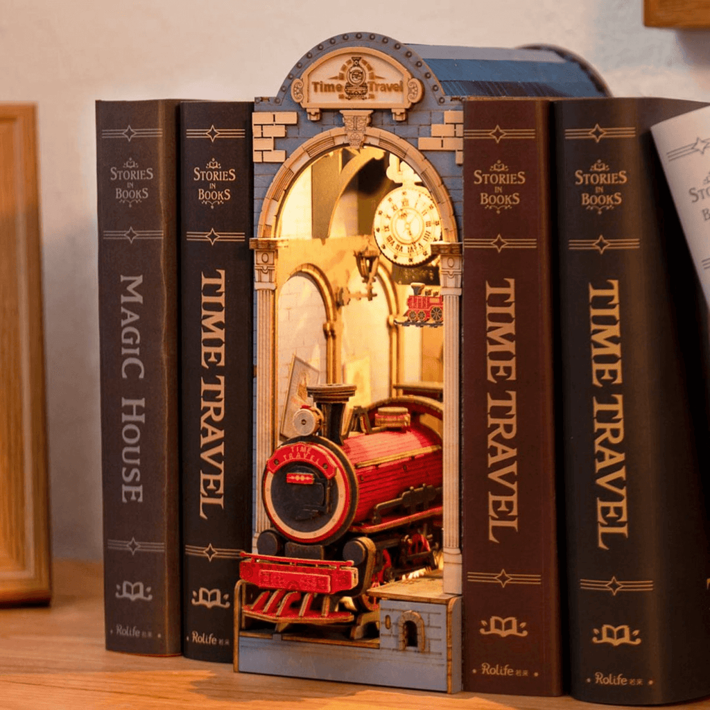 Opplev miniatyrhåndverkets magi med dette intrikate dioramaet. Tidsreisetemaet vekker historien til live med detaljerte elementer og tilbyr både en kunstnerisk og fantasifull måte å sette pris på tidsreiser på.