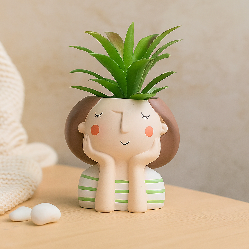 Vi introduserer UrbanSprout miniatyrharpiksplantesett – Lekne sukkulentpotter, en herlig samling av små plantekasser designet for å bringe sjarm og grønt til ethvert rom. Laget av slitesterk harpiks, er disse plantekassene perfekte for å vise frem sukkulenter, kaktus eller andre små planter, og gir et lekent preg til innredningen i hjemmet eller på kontoret.